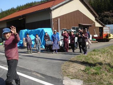 集落営農組合の皆さん・・種まき準備の手を休めて応援していただきました。だんだんでした。