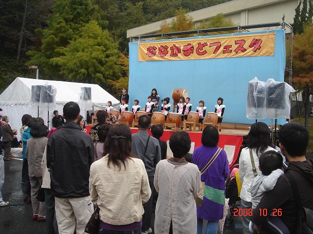 雨の止み間に吉田保育所の火焔太鼓ジュニア・・。オン・ステージ。