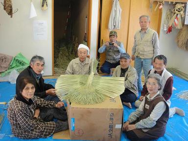 午後 吉田町へ。 稲わら工房がにぎやか・・・。「大社さんへ奉納する 鶴亀づくり」でした。吉田町の匠が集結。10日に奉納される 鶴亀が 青藁で 作られています。
