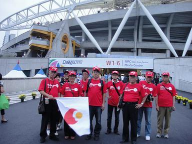 ボルトが終わると 一斉のお客様も帰途に・・・我々も 又ソウルに向かって帰途につきました。帰ると午前2時前・・・。興奮の1日でした。詳細は後ほどですが 本日は速報を。持参した横断幕は会場内では禁止・・取り上げられてしまい・・帰り外で 記念撮影でした・・。