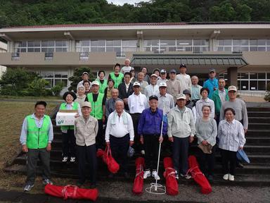 夕方から 田井小学校校庭の草取りが賑やかに行われました。子供たちも一緒になって 大人数の勢で きれいになりました。