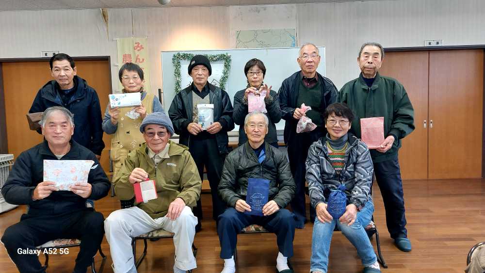 来年も元気で参加できるように 健康づくり頑張りましょう!!。プレゼント交換をしてお開きでした。良いものを頂きまして・・。