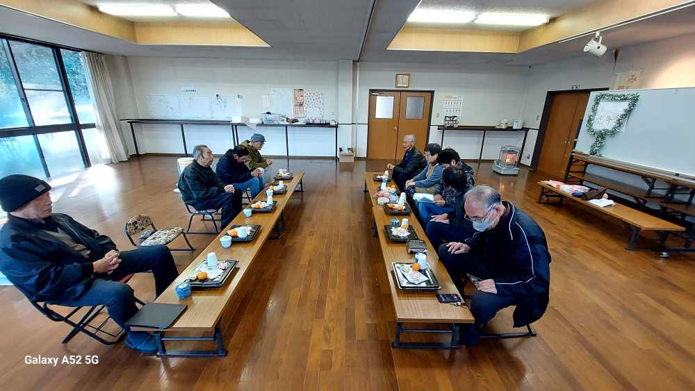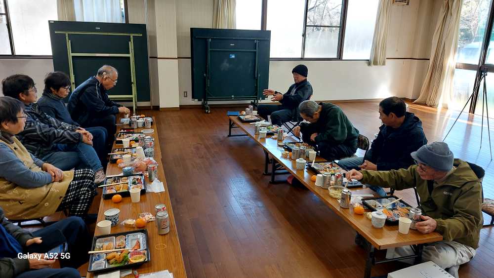 センターでは上山老人クラブ 「竹ん子の会」の忘年会でした。世話役さんの配慮で 弁当とビール ノンアルも用意していただきました。