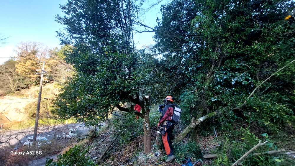 なんと まげなもんですわ・・次の場所へ移動されました。柿 ユズ 桑の木 など 実の生る木を中心に 処理していただきました。テゴは地元の若手の皆さん・・これまた慣れた手順で大きな木でも倒して こだくって頂きました。だんだんでした。
