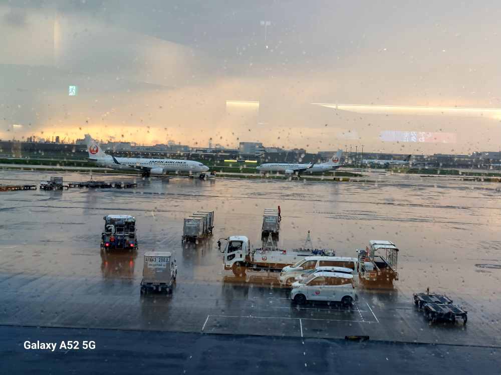 夕方 早めに羽田に到着・・最近はカードを示して 休憩できるスペースを利用することを覚えまして・・。コーヒーを飲んで飛行機を眺めていました。