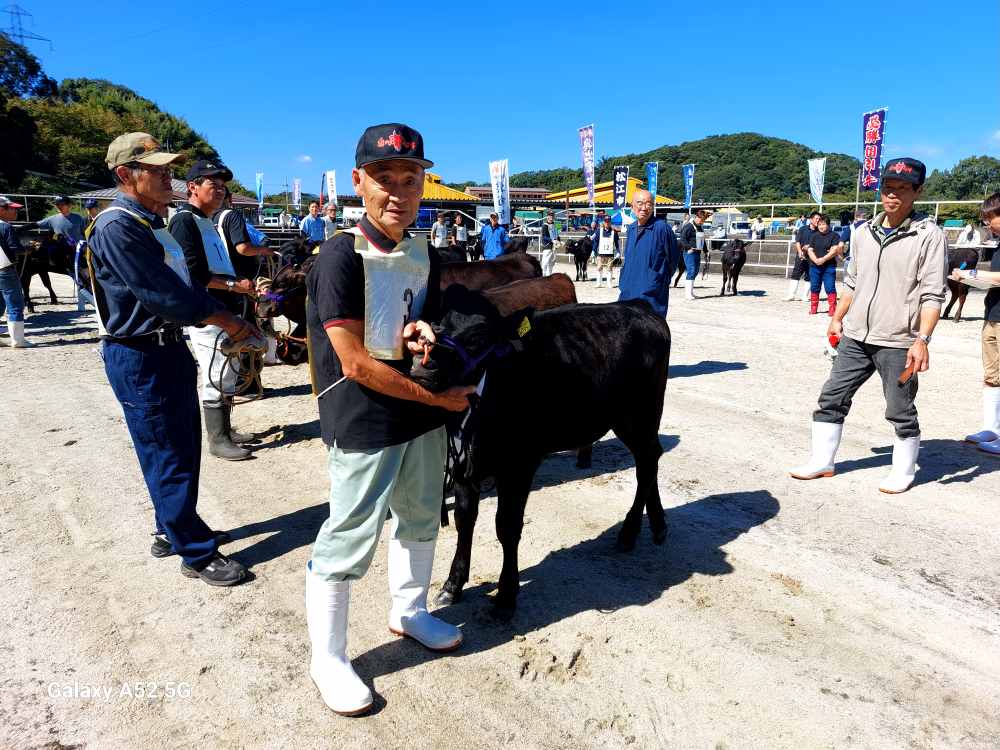 名伯楽 倉井先生所有牛も出場していました。先生所有牛の(姪)にあたる子牛が今回1区のチャンピオンだそうで・・これからも名牛を育てていただきたいと思います。「わしのペットだわね・・」。健康をお祈りします。