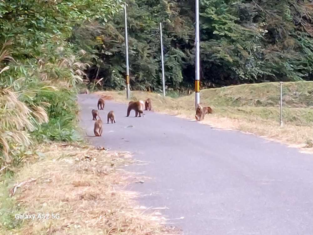 なんと昼前 所用で吉田に向かう途中・・田んぼにたくさんのサルの軍団・・二番穂でも狙っているのでしょうか・・。いるわ・いるわ・・。これからどこへ向かいますかね・・・サルに聞かんと。
