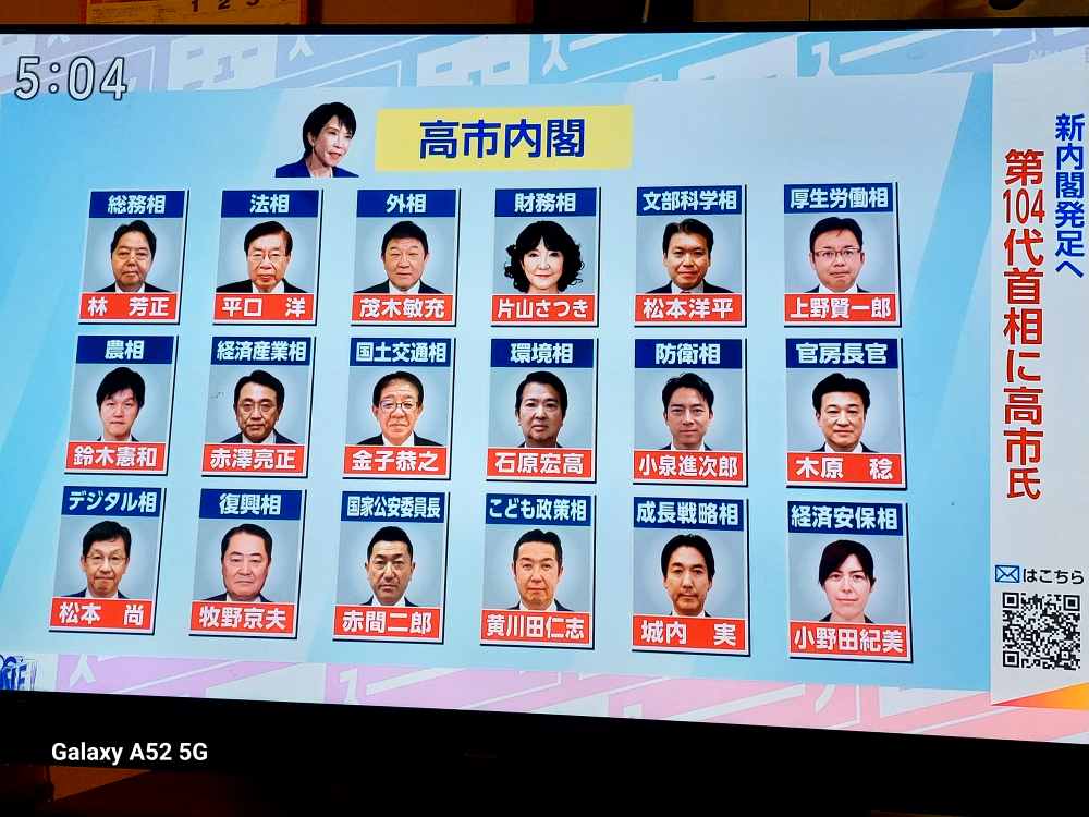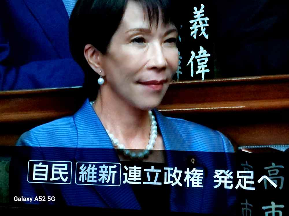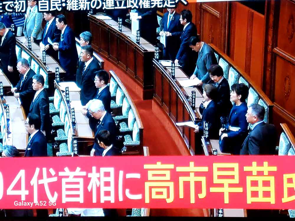 午後 高市連立内閣が発足・・衆議院は一回目で過半数・・参議院は一票足らず 決選投票でしたが 高市さんで決定!