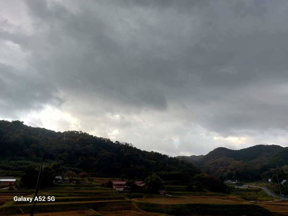 秋祭りの朝は 雨模様・・途中 神社の上空は暗雲に覆われ 雨か・・と心配しました。