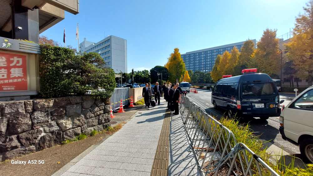 議員会館前で記念撮影。イチョウ並木がきれいでした。別班の写真はありません。