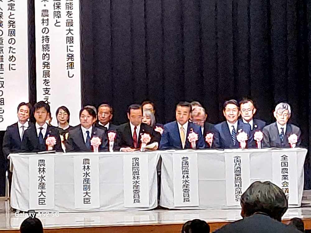 高橋会長あいさつ 来賓は 鈴木農林大臣 同 副大臣、衆参から各委員長にご出席を頂きご挨拶を頂きました。鈴木大臣・・高橋会長には農林省時代 鍛えていただいた・・そのお陰で今がある。しっかり農林行政に取り組みたい!。と力強いご挨拶でした。