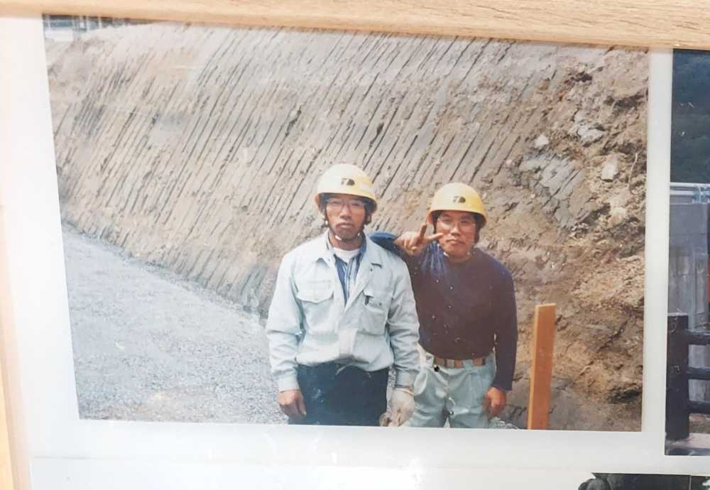 午後 昔 一緒に仕事した 同年齢の友人の葬儀に行ってきました。「は~ちゃん」・・いつも一生懸命仕事していました。力持ちで 腰に安全ベルト 工具袋に金づち シノ(建築用番線しめ)ペンチ など 一式ぶら下げて型枠を組んだり 鉄筋を組んだり 汗をボロンボロン流しながら 働いていた姿を思い出します。お世話になった方(右・故フミさん・大先輩)と一緒の写真が飾られていました・・懐かしいですわ・・合掌。ご冥福をお祈りします。