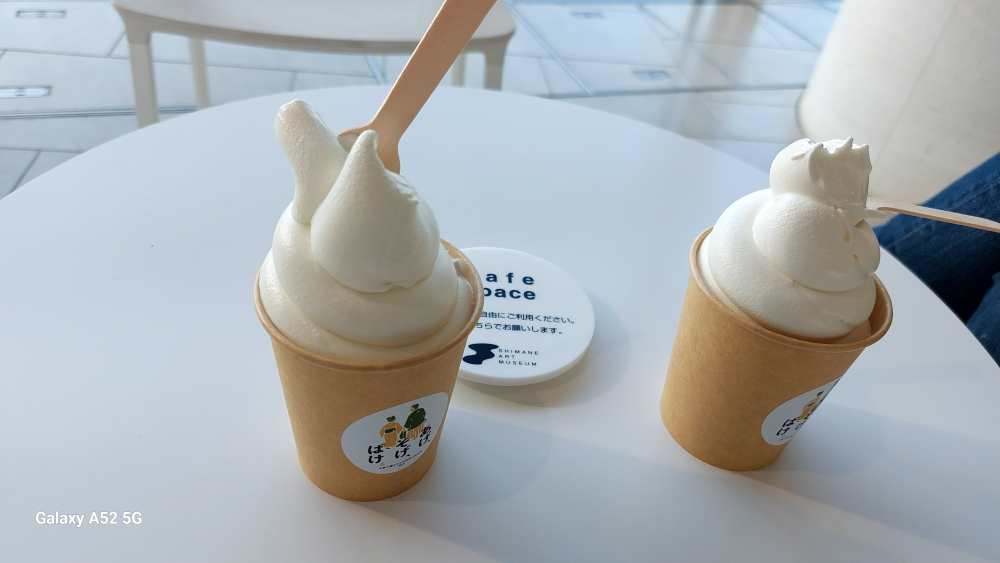 外で 休憩。名物の ソフトクリーム・・。超美味・・値段も良心的。