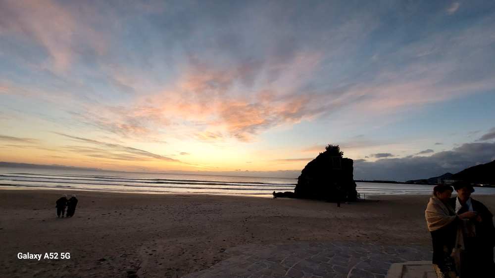 次に 稲佐の浜で 夕日を拝んで・・向こうに三瓶山もきれいに見えました。きれいに整備されています。