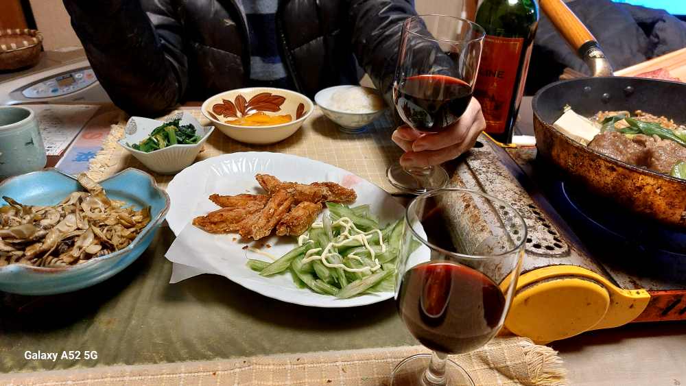 我が家でも 「ジジババ」で 細やかな クリスマス。「ポリープも無かったし・・とりあえず乾杯!!」。