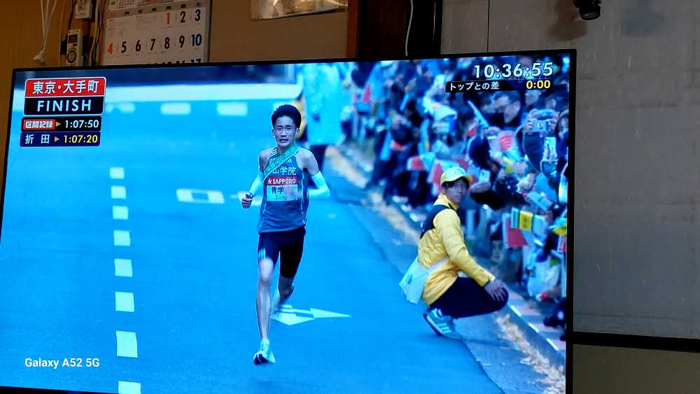 午前中・・なんといっても 箱根・・あの辺りは雪降らんのですね。山下りがスタートしていました。さすが 青学 強いですね・・誰かが腹筋が痛くなった・・などと云うことがありませんね。