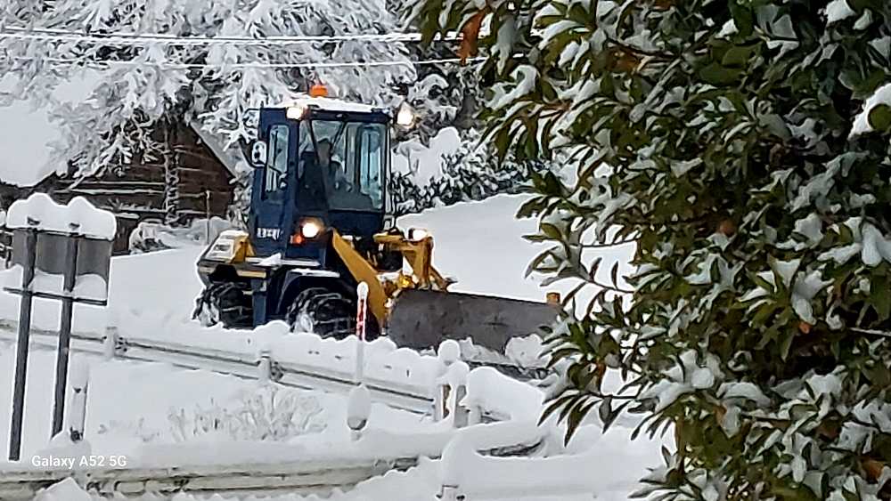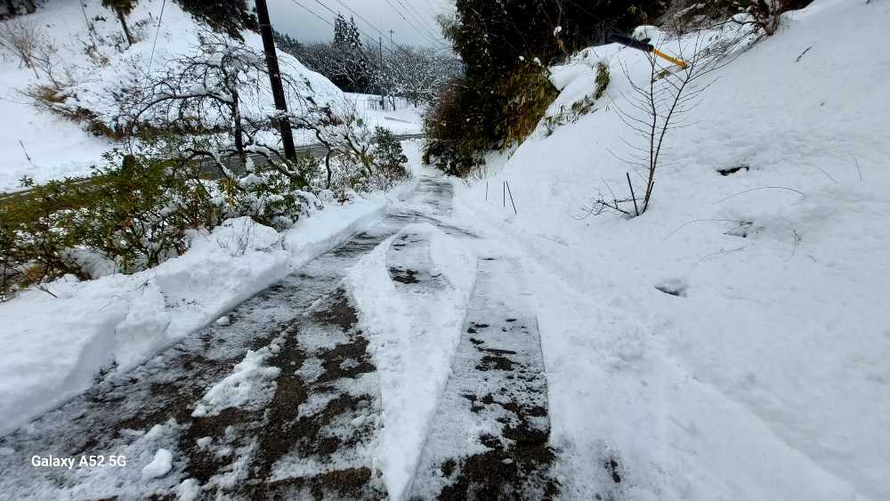もう3日が終わりました。今朝は少し積もっていました。新聞取も 長靴ごとで 取りいかんと・・。と・・向こうから小さな除雪機・・。朝早くから ありがたいですね・・ご苦労さんです。
