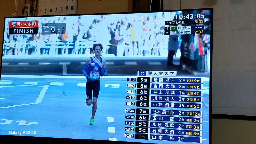 順天堂大学が最後 3位入賞の快挙!!?。昨日も頑張っていましたが 10位以内でしたか・・。今は亡き 同僚議員だったあだち君がいつも「順天堂!順天堂!」と一生懸命応援していました・・最近 パッとしませんでしたが 久々の快挙に喜んでいるだろな・・と思い出していました‥合掌。