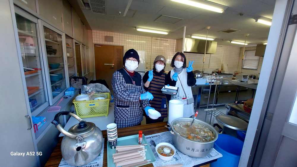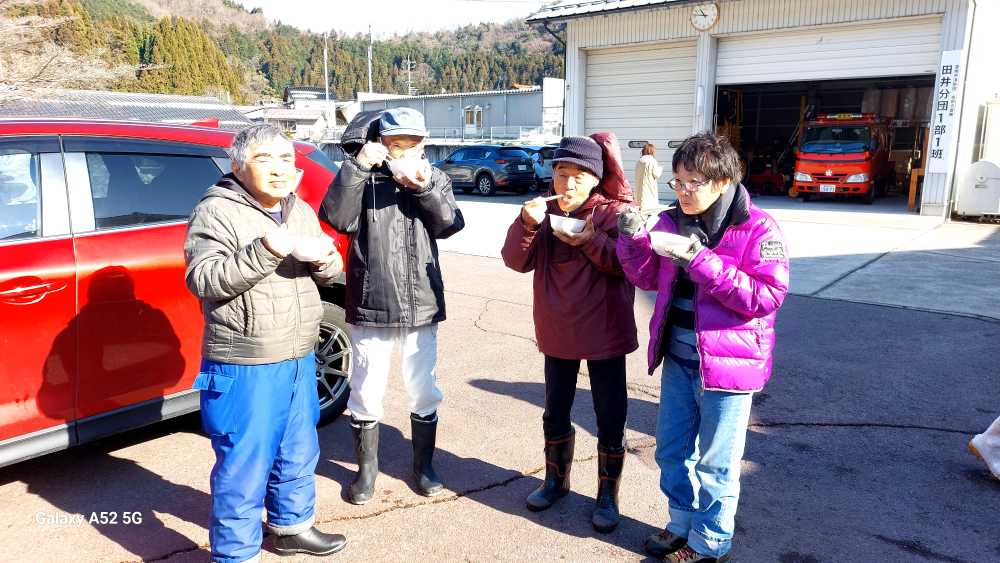 「豚汁が出来たよ!!どうぞ~!!」と 役員さんのご配慮で 熱い豚汁を頂戴しました。大変な心遣いで トンドさんで 焼いたお餅を載せた美味しい 豚汁でした。だんだんだんだんでした。「お替わりありますよ~!!」。