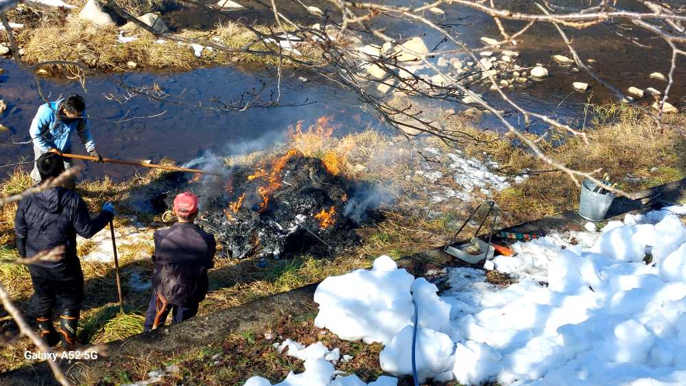 今日は予て連絡があっていた 交流センターで 合同トンドさん でした。毎年お隣とやっていましたが 今年はお世話になるか・・と言うことで交流センターにもって行きました。