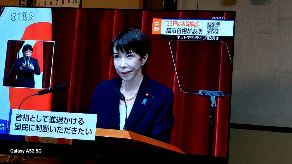 夕方 6時から 高市総理記者会見・・上記 23日 解散。1月 27日公示 2月8日 投票・・と発表されました。