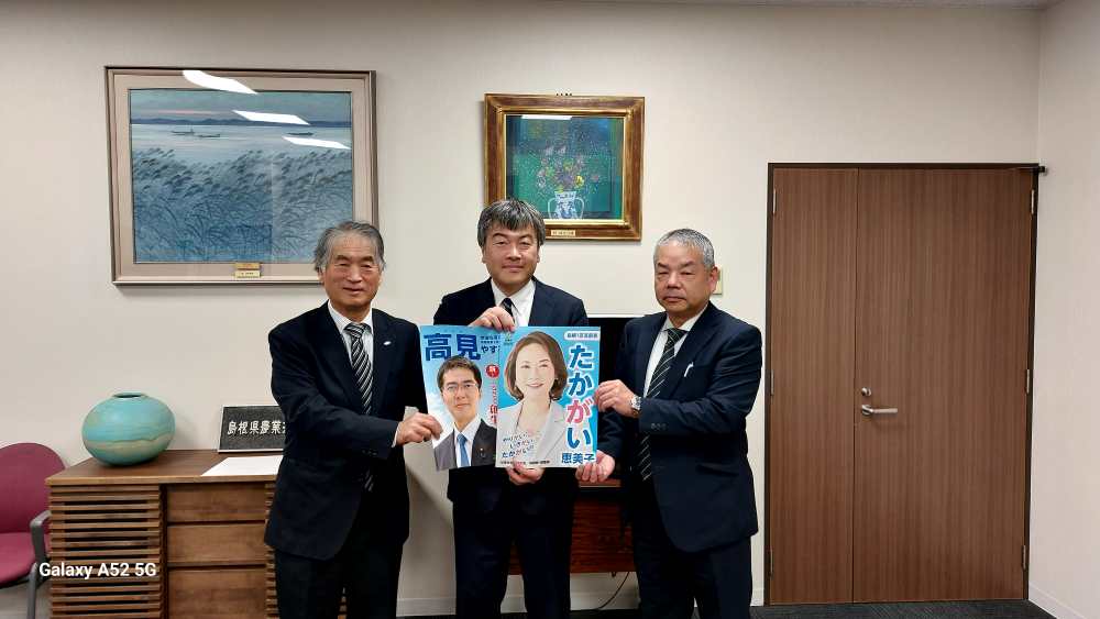 頑張ってください・・と言えば いつも中央要望の時にお世話になる秘書氏においでいただきました。「応援に帰ってきた!!」とのことでした。短期決戦です。頑張ってください。応援してますよ!!。