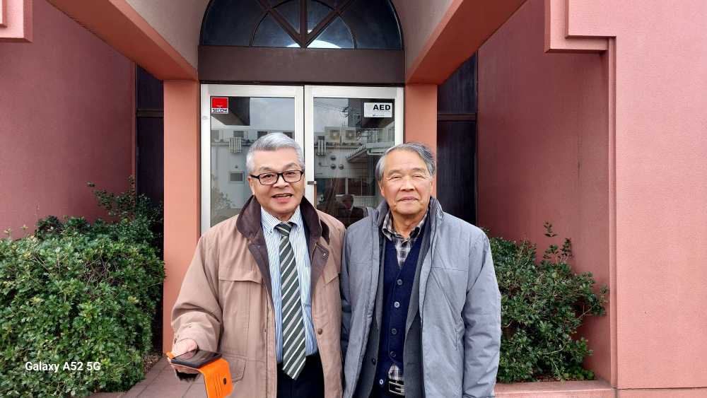 午後 玄関口で親しげに‥お二人。「50年ぶりにおうた(会った)わね!!」。問えば 若き日に 島根県青年の翼でヨーロッパ研修に同行されたお仲間だそうで・・。それは何よりでした。