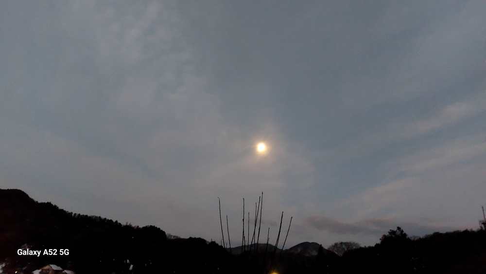 朝 新聞を取りに行くと 頭上に きれいな 月が出ていました。調べてみたら スノームーン と云われる満月だそうです。きれいに撮れませんが きれいな月でした。良い天気・・春の予感です。立春でした。