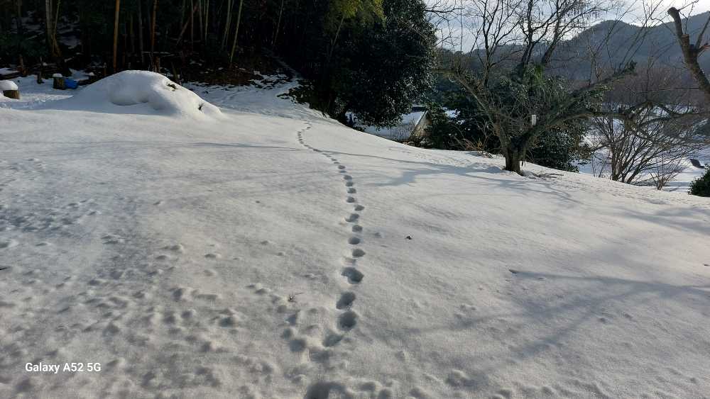 上の畑・・まだ解けません・・小動物が歩いていますね・・狸ですかね。