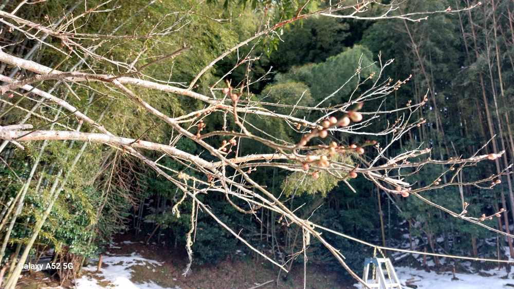 出雲はまさに 春でしたが 上山の標準木?(梅の花) まだつぼみが固い・・。