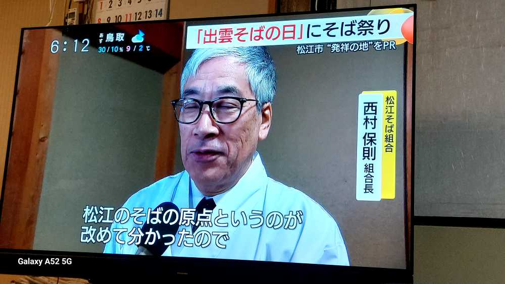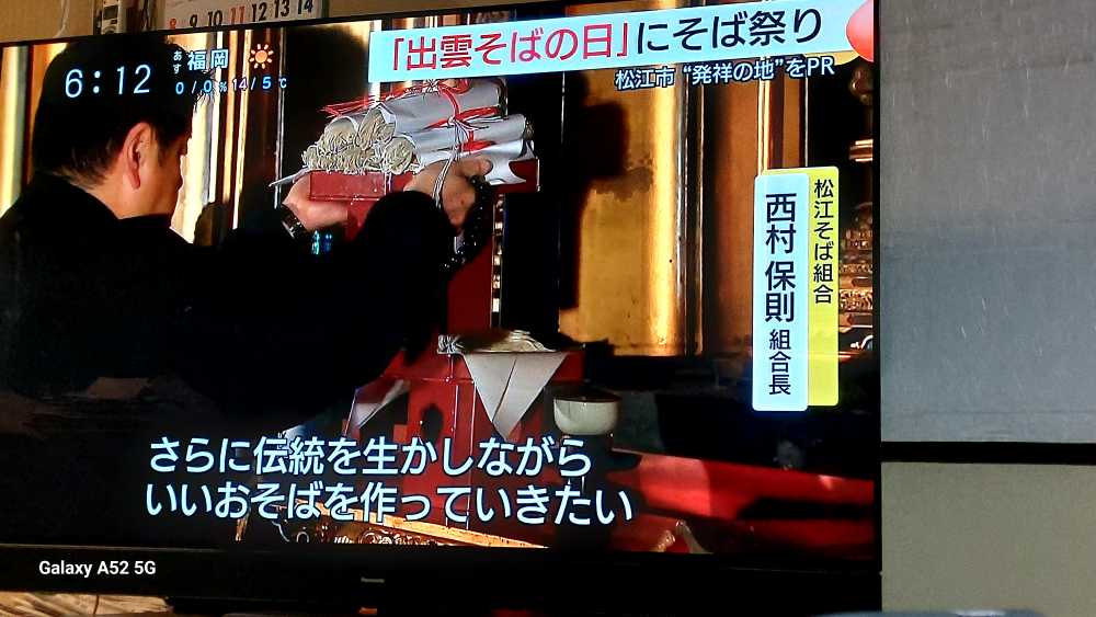 夕方テレビで 本日各地の行事が報じられていました。本日は「そばの日」で 神前の供えられた・・松江の名店「きがる」の大将さんが会長さんですね。また行って見ます。