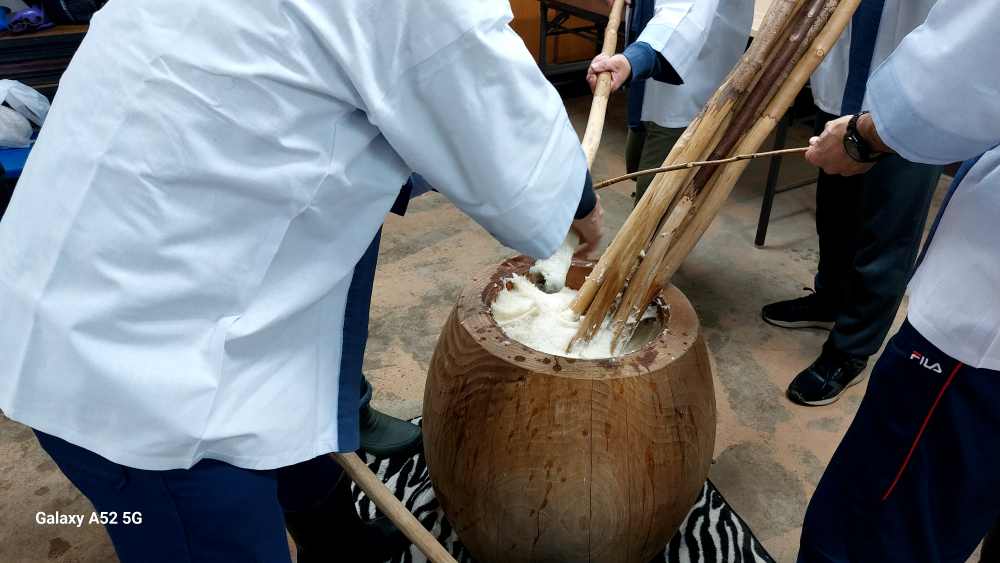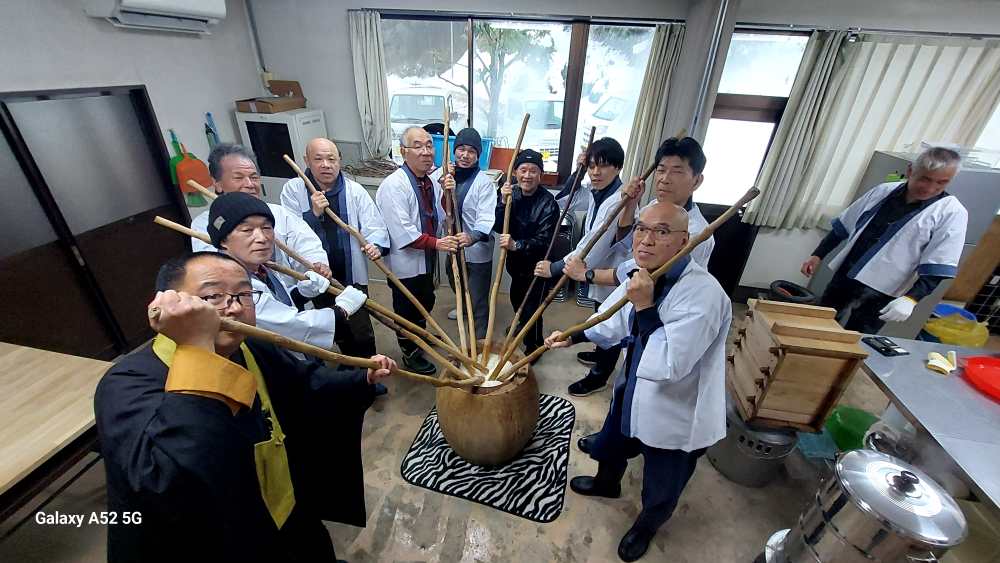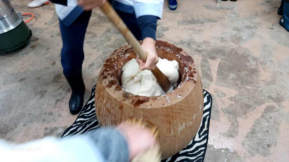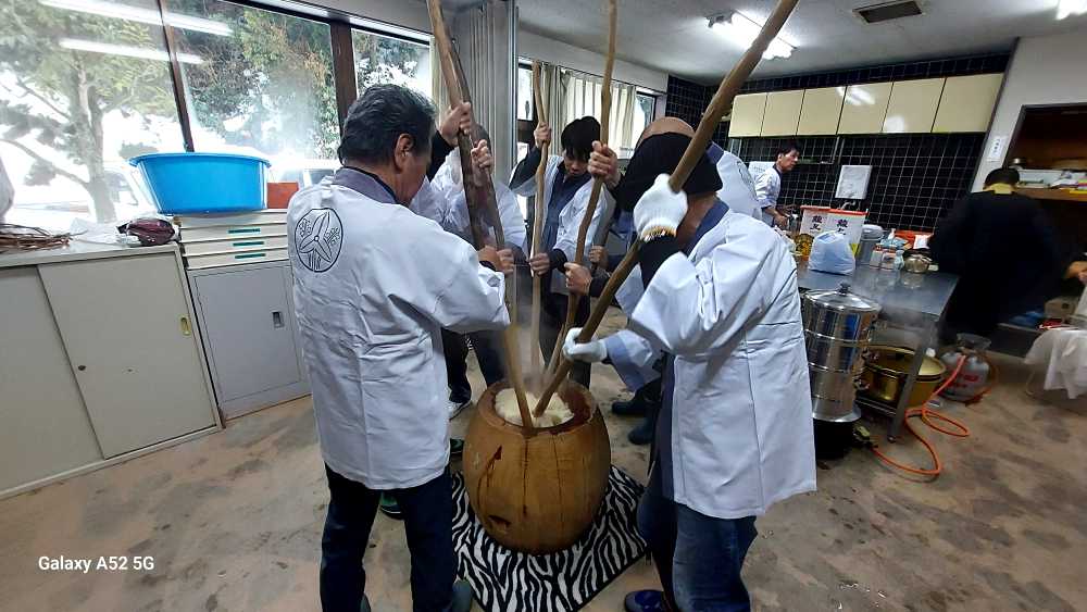 「やりますよ!」と 当家さんの掛け声で 今年も伝統の餅つきが継続されました。当家組合は10戸ほどですが 持ち回りでお世話役をされています。