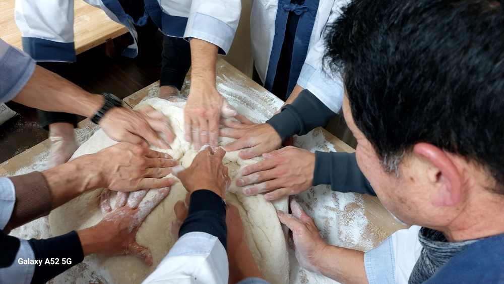 五升・五升・五升 を3回ついて 大餅を作られます。それぞれ皆さん手慣れたもので 見事に大餅と それに付随した餅を手際よくつきあげられました。