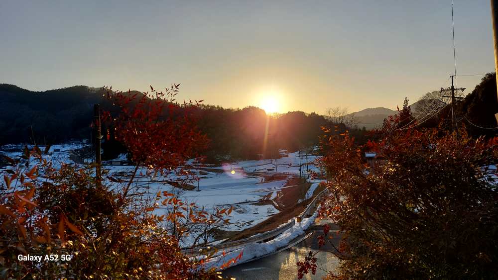 今朝は放射冷却現象で道路がテカテカに凍っていました。