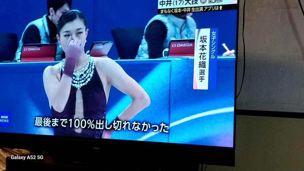 残り 4人・・日本 3人と アメリカ・・中で アメリカの選手は 実力者だそうですが 安定の演技で一位・・坂本選手が2位・・3位 に ショー十トップだった 17歳と云う結果に 大きな拍手が起きていました。