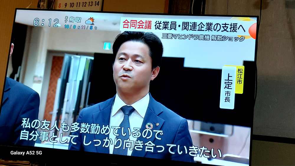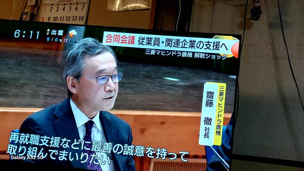 夕方のテレビ・・先日 「清算することになりました・・」と云う記者会見で びっくりした 元 佐藤造機 の 三菱マヒンドラさんの その後 対策会議が報じられていました。知事 市長も全面協力を表明されていました。